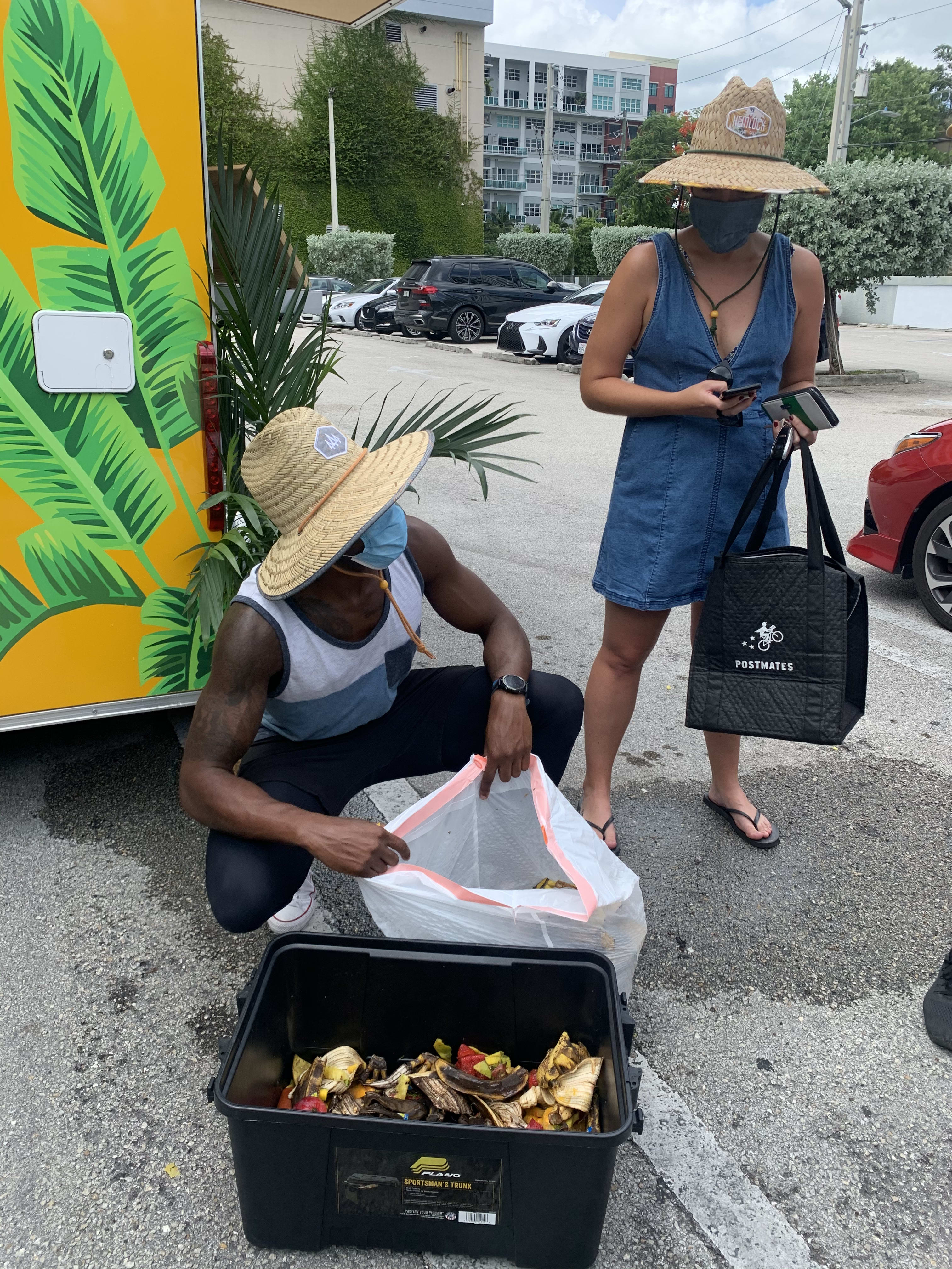 "Hay que tener las lombrices, el contenedor y el flujo de aire adecuados: es un equilibrio entre alimentos y carbono", explica. "Compramos un contenedor, lombrices y empezamos con nuestros propios residuos de comida. Lo vigilamos todos los días y lo tratamos como si fuera nuestra mascota. Empezamos a ir al proyecto Green Haven en Overtown para poder ser la persona intermedia entre los residuos de comida y los jardines comunitarios. La gente quiere que sus residuos se recojan o se dejen en algún sitio".
